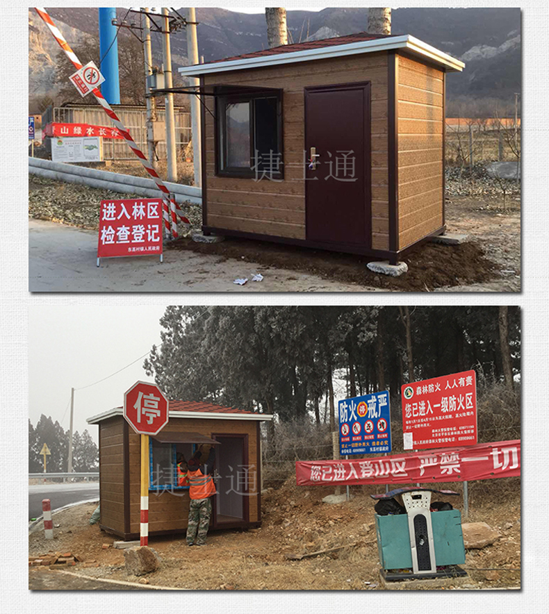 為了加強森林防火檢查站的管理,充分發(fā)揮檢查站的智能作用,結(jié)合每個地區(qū)的情況,制定不同的崗?fù)し桨?。檢查站崗?fù)さ墓ぷ魅藛T要嚴格對進入林區(qū)的人員、車輛實施檢查和教育??哿艋鸱N并對人員、車輛做好登記工作。天津市捷士通科技有限公司是一家專業(yè)設(shè)計、加工、生產(chǎn)各類成品崗?fù)さ木C合移動房屋銷售的制造商。公司可定制崗?fù)?、不銹鋼崗?fù)?、收費崗?fù)ぁ⒈0矋復(fù)?、售貨亭、奶茶崗?fù)?、售貨車、售票亭、鋼結(jié)構(gòu)、活動房、早餐亭、報刊亭、環(huán)衛(wèi)房等。