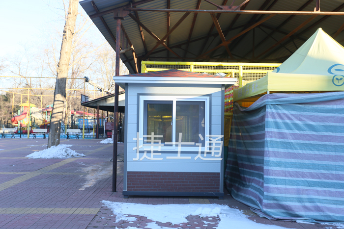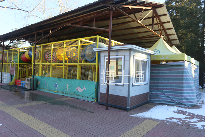材質(zhì)為金屬雕花板保安亭,尺寸為2*2 、 2*3,放于兒童游樂場,節(jié)假日既能維護治安問題,為兒童以及家長給予安全的期望,又可以為24小時值班工作人員提供一個遮風避雨的地方;