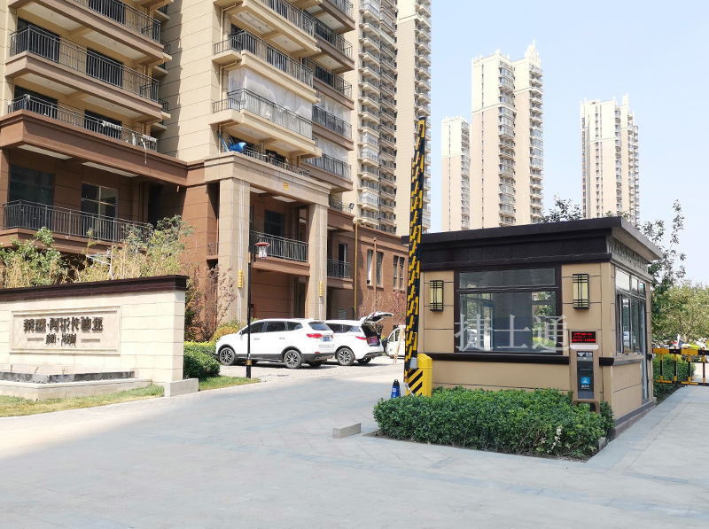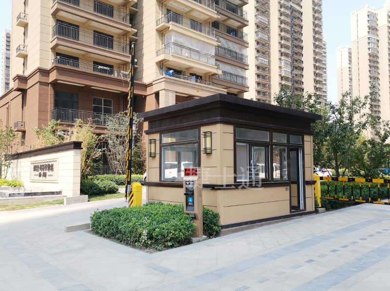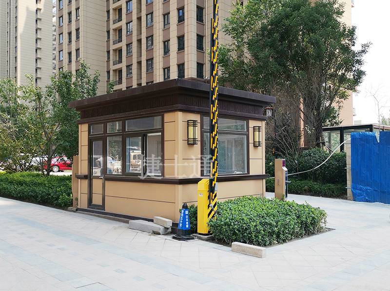 小區(qū)整體采用黃色暖色調(diào),屬于一個較高檔的小區(qū),為和小區(qū)整體相匹配,保安崗亭采用的是真石漆材質(zhì),和大理石、花崗巖較為相似,觸摸起來有顆粒感,整體較為高檔,顏色也采用黃色調(diào),和整體配套,完全融入整體環(huán)境