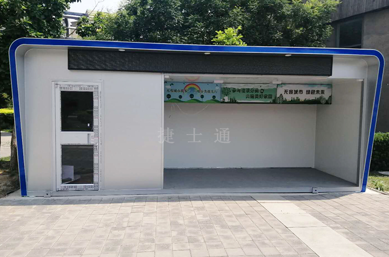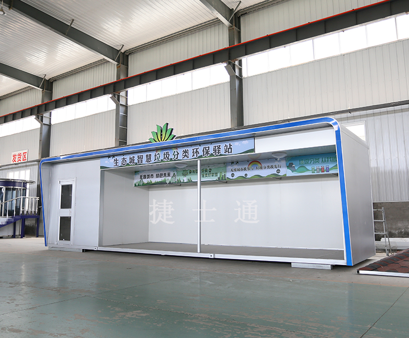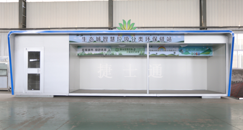 天津生態(tài)城垃圾分類驛站由捷士通崗?fù)S家設(shè)計生產(chǎn),已于六月底安裝完畢