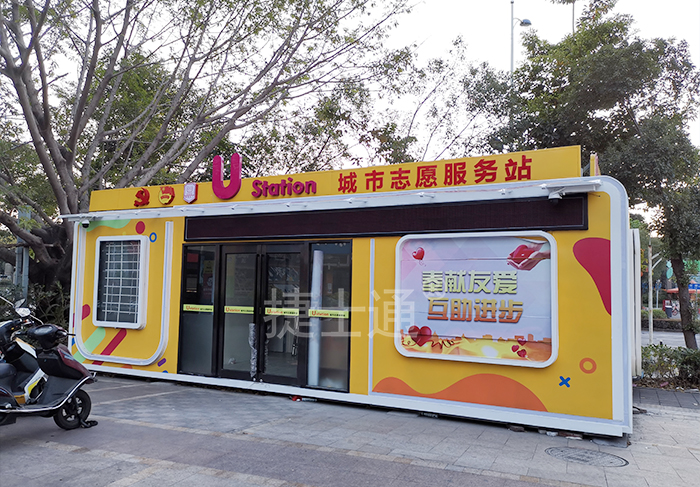 城市志愿者服務(wù)站根據(jù)街道實際情況需求定制了此款樣式,整體方鋼龍骨焊接而成,穩(wěn)固耐用,使用起來和正常房屋一樣,有防水防漏處理,無需擔心漏雨的情況。卸貨方便,將底部固定之后,接電即可使用,為城市文明建設(shè)提供了一個地標性的建筑。