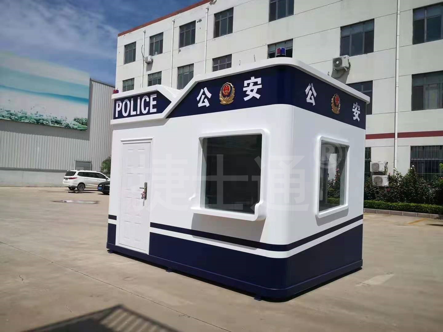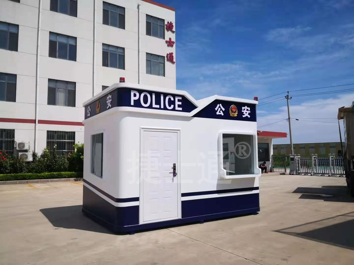 此款材質使用氟碳噴漆板材,外觀造型美觀,整體墻體主要采用白色,標語和亭身下方采用深藍色,功能性標志明顯,藍白組合是莊嚴的象征,很好符合公安執(zhí)勤