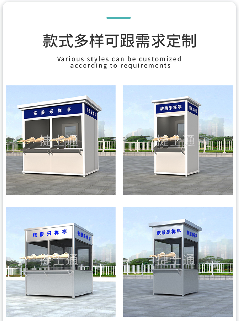 捷士通廠家為助力防護(hù)疫情,廠家可在短時內(nèi)批量生產(chǎn)核酸采樣亭,同時廠內(nèi)備有現(xiàn)貨,確定后即可發(fā)貨。