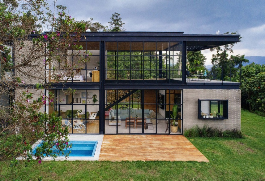這個(gè)釉面金屬結(jié)構(gòu)集成房屋有兩個(gè)水平的地板,被真空攔截,房子的空間朝向這個(gè)樓層。沒有墻壁,