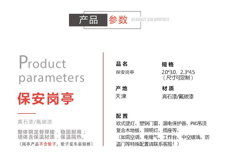 標(biāo)準(zhǔn)配置 :墻體含保溫材料,屋頂鍍鋅板靜電噴涂,PVC吊頂,地板可定做防滑鋁板/復(fù)合木地板,電箱、開(kāi)關(guān)、插座、暗敷電線、照明燈、桌面、抽屜、鍵盤托、空調(diào)架等;可加配:空調(diào)等;咨詢電話:15822882616,公司網(wǎng)址:www.91porm.net