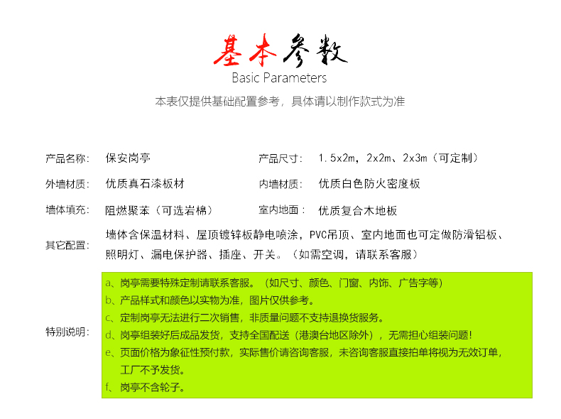 類型 | 保安崗?fù)?/span> | 顏色 | 可定做 | 運(yùn)輸方式 | 公路運(yùn)輸 | ||