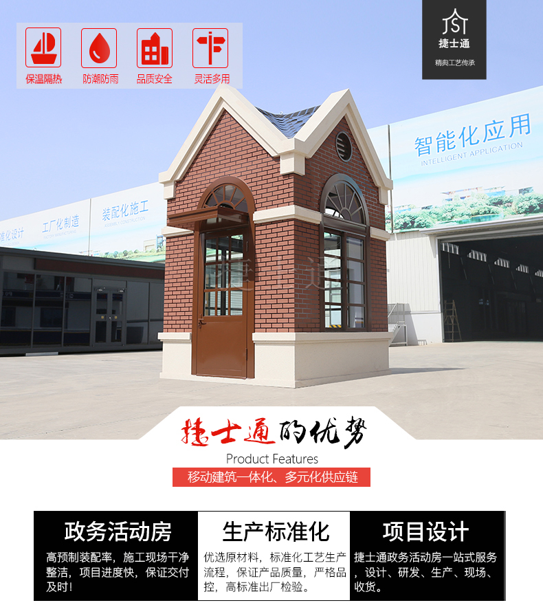 現(xiàn)代化小區(qū)建設(shè)總體風(fēng)格較傾向于歐式風(fēng)格,因此捷士通廠家推出新款歐式保安崗?fù)?/a>,配套整體建筑環(huán)境使用