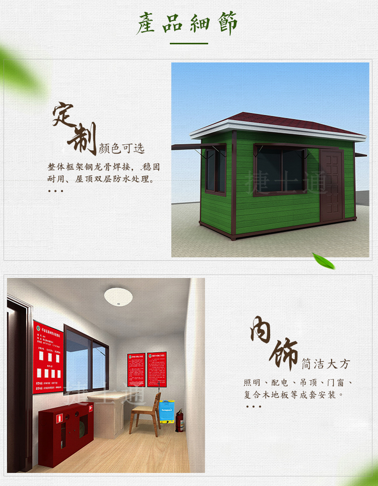 天津市捷士通科技有限公司10幾年來一直致力于戶外移動房屋的研發(fā)和生產(chǎn),在森林防火檢查站上面有一套成熟的方案,也為首都北京的森林防火工作出過應(yīng)有的力量。