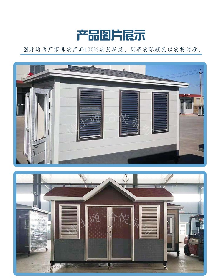 生產(chǎn)線包含:設(shè)備房、收費崗?fù)ぁ⒏叨藣復(fù)?、警?wù)崗?fù)?、售貨亭、移動廁所、智能吸煙亭、智能安檢亭、大型移動辦公室、大型設(shè)備房等。