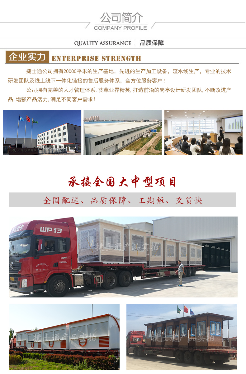 天津市捷士通科技有限公司坐落于美麗的天津市北辰區(qū)萬發(fā)科技園。占地面積20000平方米,是一家經(jīng)驗豐富設(shè)計、研發(fā)、生產(chǎn)、銷售環(huán)保移動房屋結(jié)合智能化一體的經(jīng)驗豐富生產(chǎn)供應(yīng)商。聯(lián)系電話:15822882616。