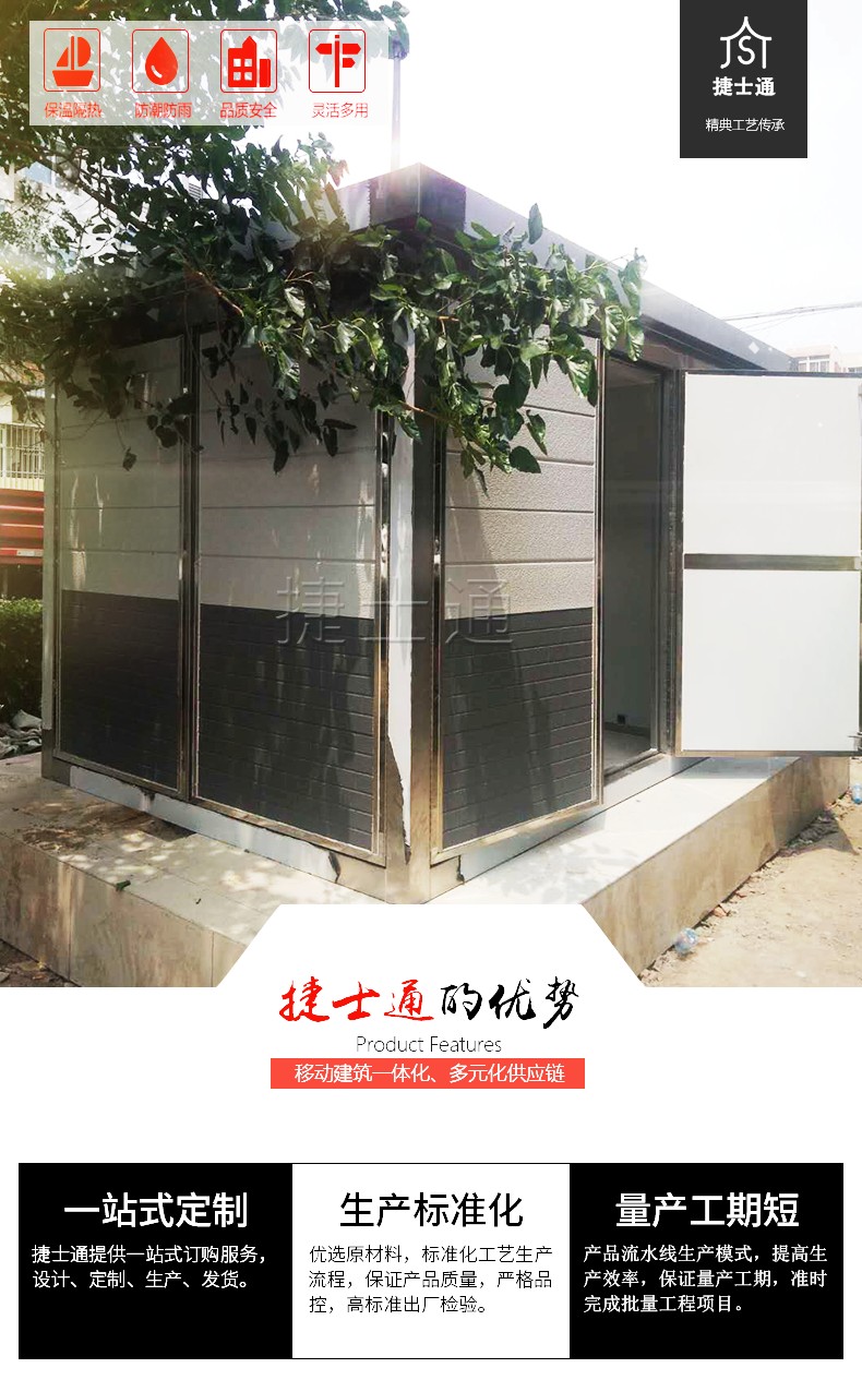 標(biāo)準(zhǔn)配置:墻體含保溫材料,屋頂鍍鋅板靜電噴涂,PVC吊頂,墻體顏色及門窗類型均可按需定制,地板可定做防滑鋁板/復(fù)合木地板,電箱、開關(guān)、插座、暗敷電線、照明燈、桌面、抽屜、鍵盤托、空調(diào)架等。