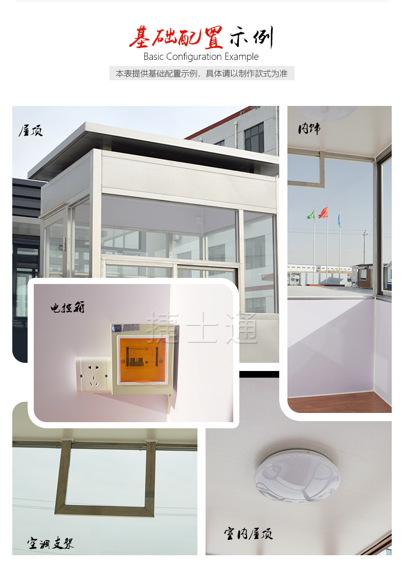 標(biāo)準(zhǔn)配置:屋頂鍍鋅板靜電噴涂,PVC吊頂,電箱、開關(guān)、插座、暗敷電線、照明燈、桌面、抽屜、鍵盤托、空調(diào)架等。可加配:空調(diào)、廣告詞、玻璃雨棚、防彈崗?fù)さ?。咨詢電話?span style="font-family:lucida sans unicode,lucida grande,sans-serif;">15822882616,公司網(wǎng)址:www.91porm.net。