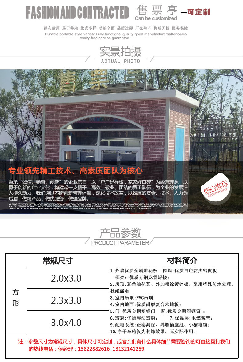 造型美觀大方,金屬雕花板具有保溫隔熱的功能,喜歡此款售票亭的請(qǐng)與我廠聯(lián)系。