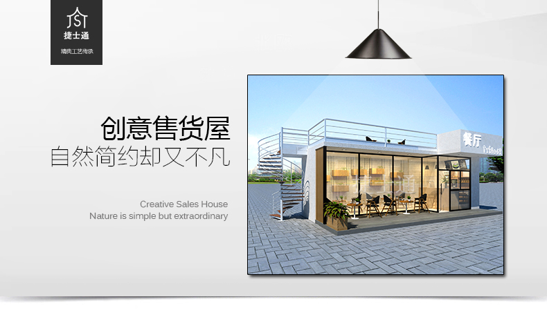 一個(gè)創(chuàng)新的商業(yè)空間載體,不僅僅是捷士通移動(dòng)房屋一直進(jìn)取的方向,同樣也是諸多商業(yè)管理公司一直尋找的全新商業(yè)經(jīng)營模式,美好移動(dòng)空間創(chuàng)辦人 --捷士通移動(dòng)房屋,積累多年行業(yè)經(jīng)驗(yàn),通過運(yùn)用裝配式房屋體系、鋼結(jié)構(gòu)為主體,搭配專利性墻體材料的形式,利用環(huán)保、便捷及美觀的設(shè)計(jì)理念,打造20-200平米輕奢移動(dòng)商業(yè)空間體—售貨屋及整條街售貨屋、售賣屋系列。