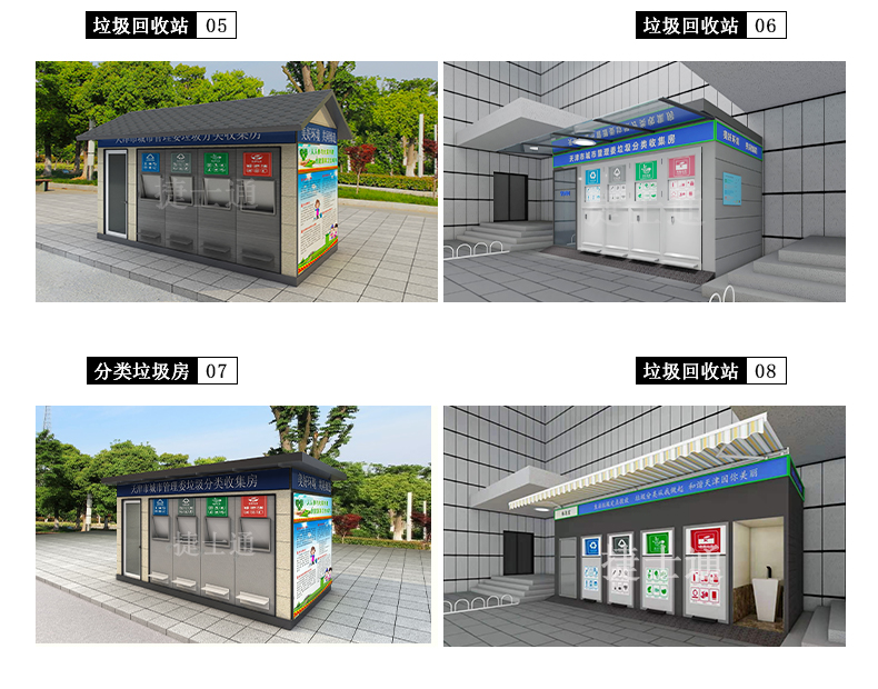 環(huán)保垃圾房可根據(jù)客戶需求定制款式樣式、尺寸大小,放置在物業(yè)、小區(qū)、學(xué)校、商場等場所使用,可根據(jù)放置場所人口數(shù)量、人流量大小,設(shè)置各個分類垃圾房桶的數(shù)量