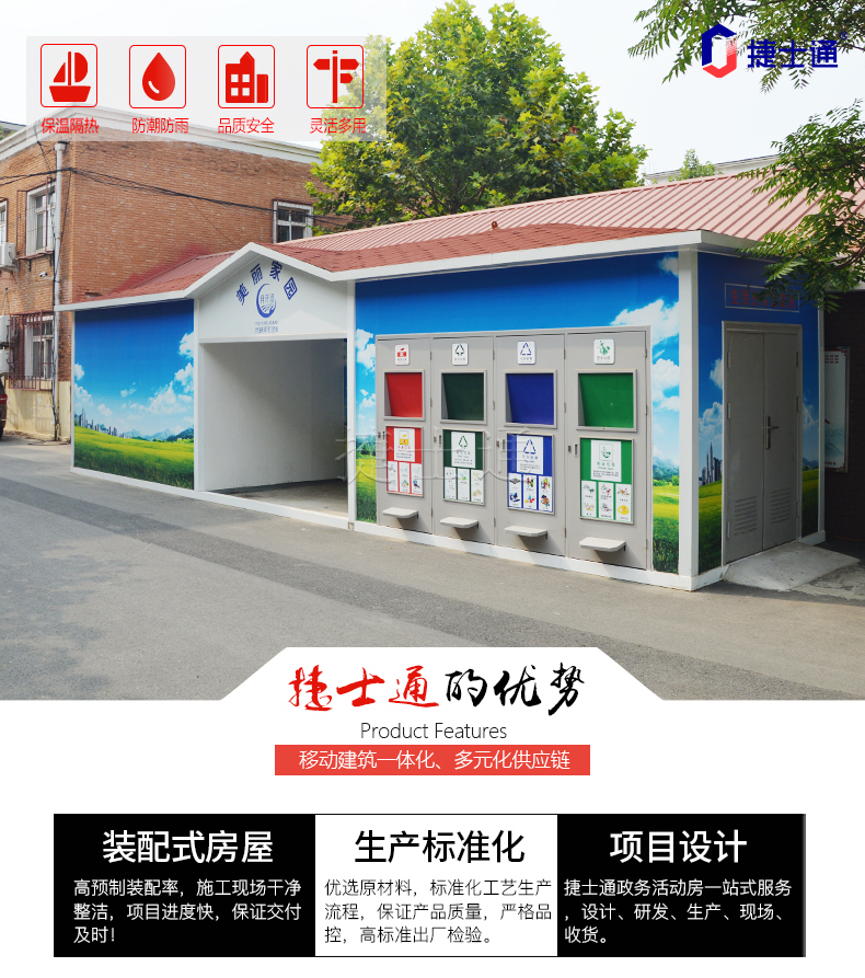 大型戶外垃圾房使用場(chǎng)景廣泛,可放置在小區(qū)、學(xué)校、廣場(chǎng)、商業(yè)街、單位等處