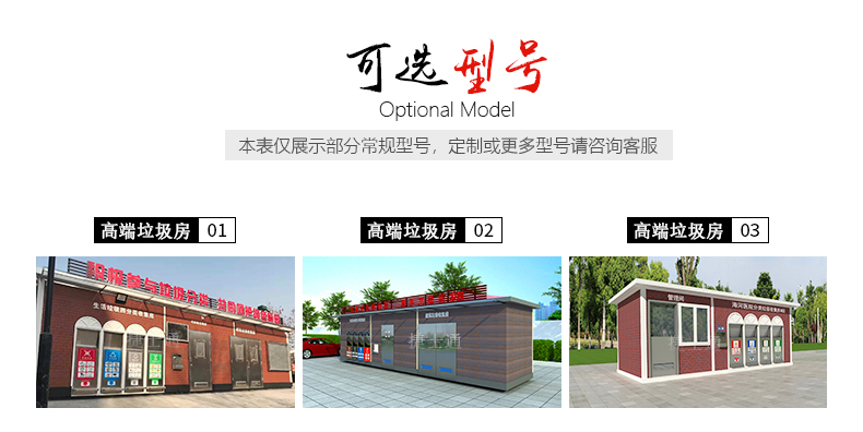 垃圾房可根據(jù)使用環(huán)境定制款式尺寸,造型美觀,穩(wěn)固耐用