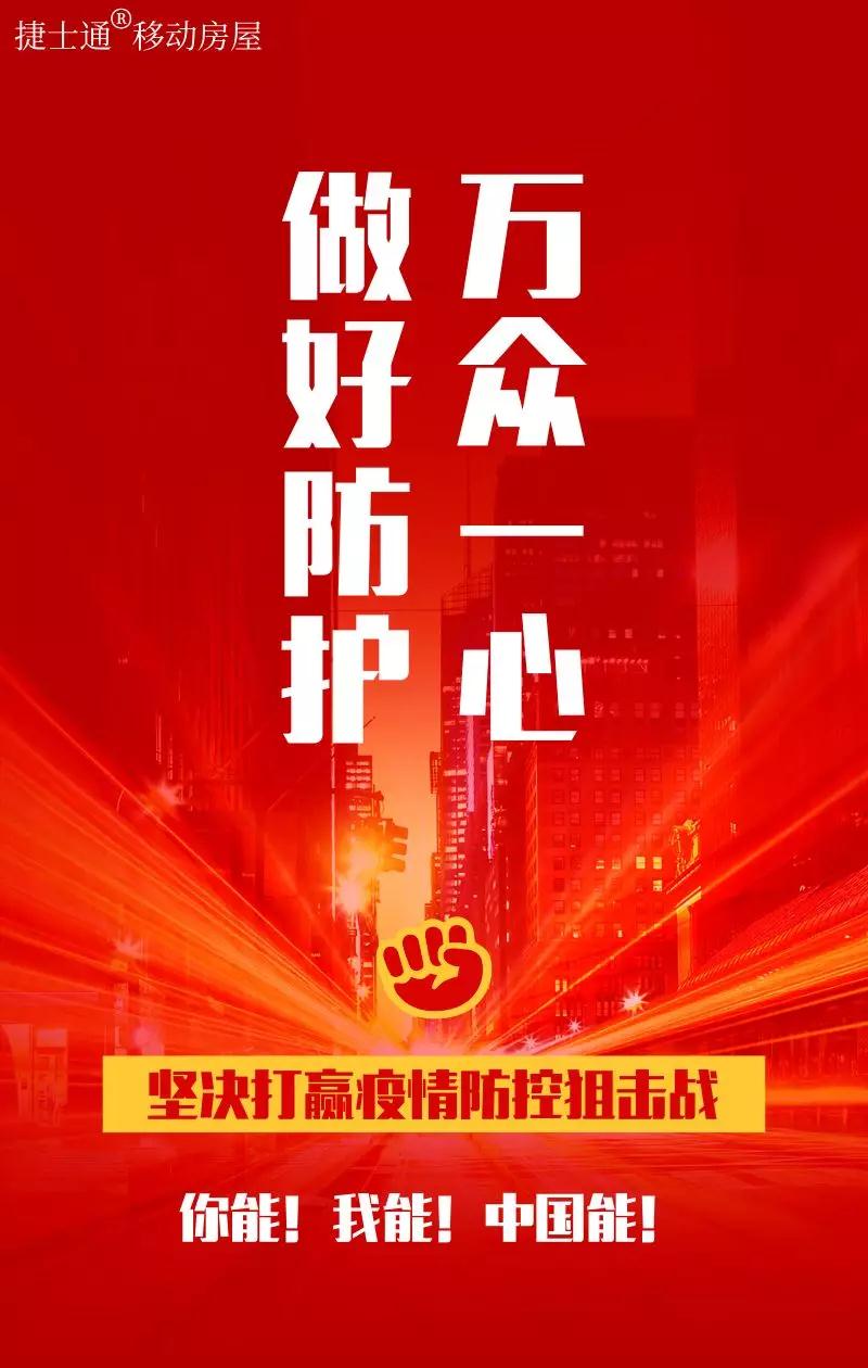 疫情發(fā)生開(kāi)始,便牽動(dòng)著全國(guó)人民的心,捷士通移動(dòng)房屋全體員工更是一直密切關(guān)注著疫情的發(fā)展情況,且注意到各地對(duì)檢疫站的迫切需求,我們作為一家移動(dòng)房屋生產(chǎn)企業(yè),雖不能如醫(yī)護(hù)工作者一般沖在第一線,但我們愿用自己的方式為打贏這場(chǎng)防疫狙擊戰(zhàn)獻(xiàn)出自己的一份力量!為疫情防控工作提供堅(jiān)實(shí)的后盾!