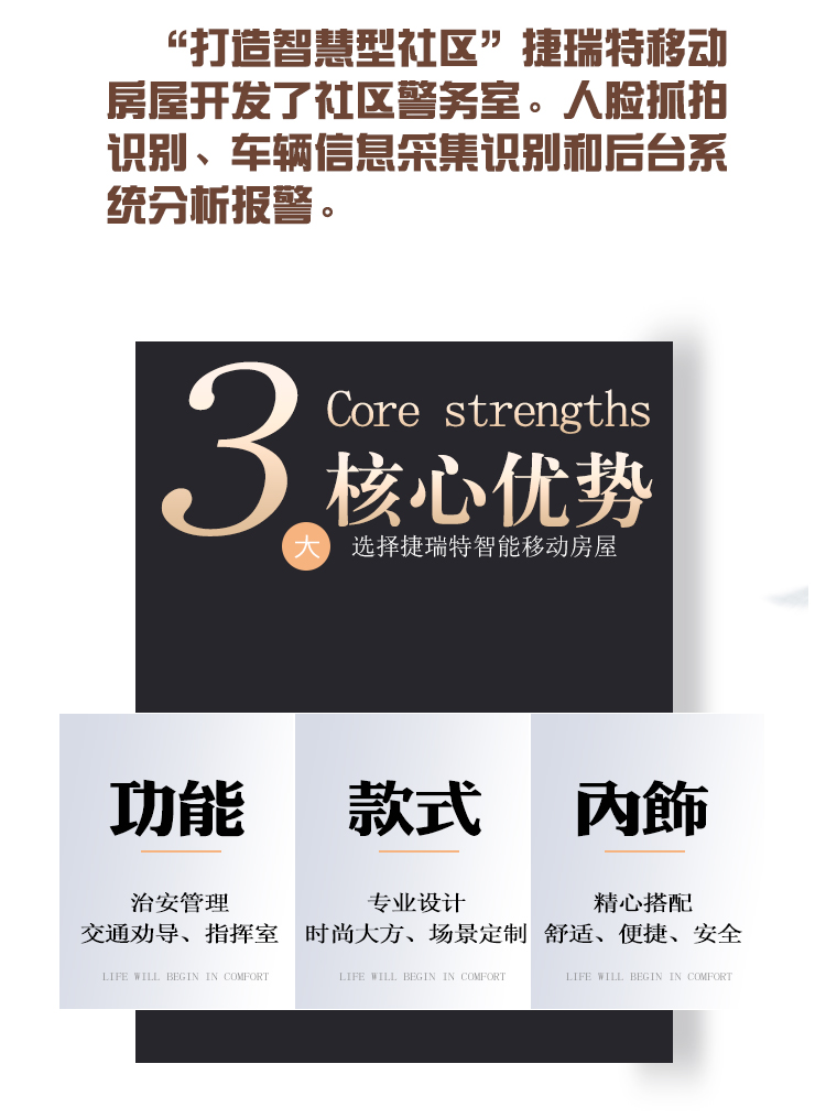 一間新建的新型智能警務(wù)室出現(xiàn)在天津捷士通廠家,,外墻標志著警察宗旨,格外的醒目。打造24小時公安智能警務(wù)室,按照“讓數(shù)據(jù)多跑路,讓群眾少跑腿”的建設(shè)理念,,使警務(wù)服務(wù)向社區(qū)有效延伸,拓展7×24小時社區(qū)警務(wù)室服務(wù)功能,建立的集警務(wù)室、服務(wù)站、實驗中心功能于一體的虛擬社區(qū)民警實驗中心暨智能社區(qū)警務(wù)室,努力實現(xiàn)將服務(wù)送到群眾身邊,把問題解決在家門口,讓智慧警務(wù)惠及千家萬戶。